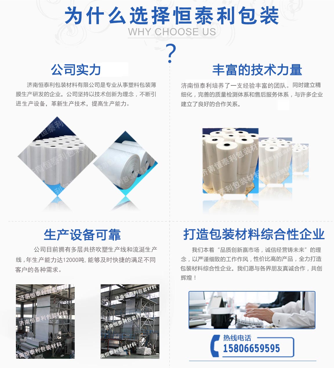 濟(jì)南恒泰利包裝材料有限公司位于濟(jì)南市市中區(qū),是從事塑料包裝薄膜生產(chǎn)研發(fā)的企業(yè)。公司成立十幾年以來,堅持以技術(shù)創(chuàng)新為理念,不斷引進(jìn)生產(chǎn)設(shè)備,革新生產(chǎn)技術(shù),提高生產(chǎn)能力。并堅持自主創(chuàng)新,加強企業(yè)管理,培養(yǎng)了一支經(jīng)驗豐富的團(tuán)隊。同時企業(yè)建立高標(biāo)準(zhǔn)、精細(xì)化質(zhì)量檢測管理體系和完善的售后服務(wù)體系,與國內(nèi)外許多家企業(yè)建立了良好密切的合作關(guān)系。公司目前擁有多層共擠吹塑生產(chǎn)線和流延生產(chǎn)線,年生產(chǎn)能力達(dá)12000噸,能夠及時快捷的滿...